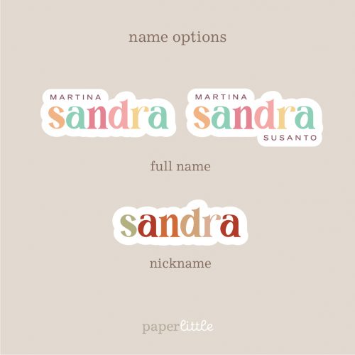• 1 lembar = 1 tema warna & 1 font & 1 format nama (full name / nickname)